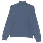 clear blue high neck long sleeves diamond pattern ribbed hem knit High-neck sweater