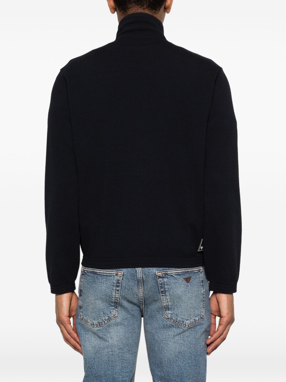 blue all-over textured zip fastening high neck side pockets High-neck sweatshirt.