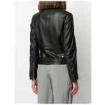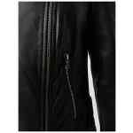 Black leather zipped biker jacket from Emporio Armani featuring an off-centre front zip fastening, zipped side pockets, rivet detailing, panelled long sleeves and zipped cuffs. Leather jacket