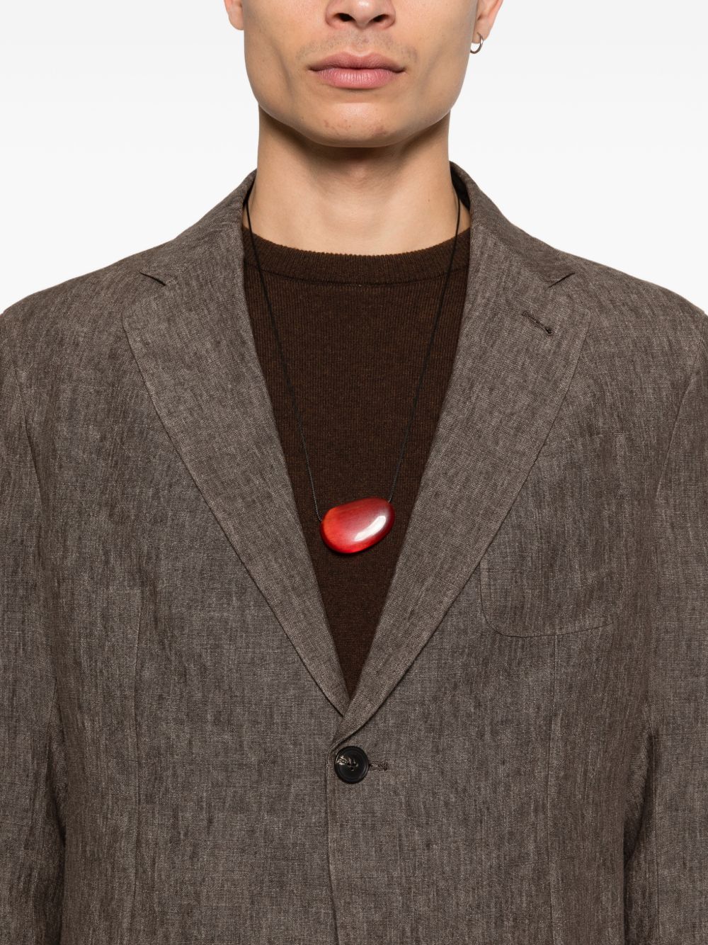 brown button fastening front patch pockets notch lapels buttoned cuffs