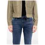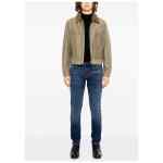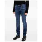Blue front button and zip fastening two side inset pockets two rear patch pockets belt loops Denim cotton jeans