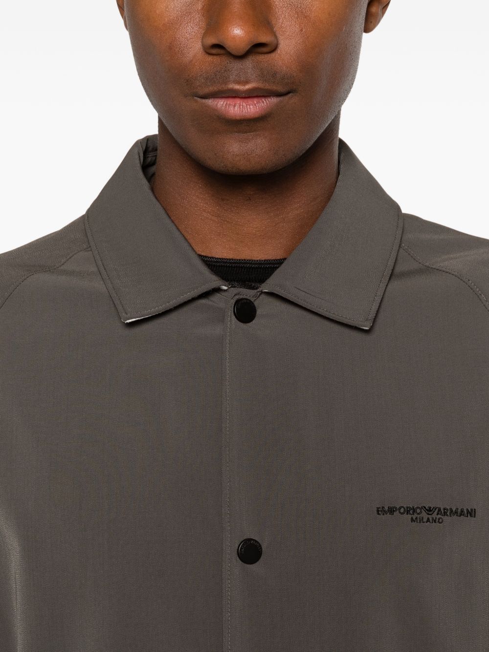 brown logo embroidery pointed collar press-stud fastening raglan sleeves side zip pockets elasticated cuffs drawstring hem Logo overshirt.