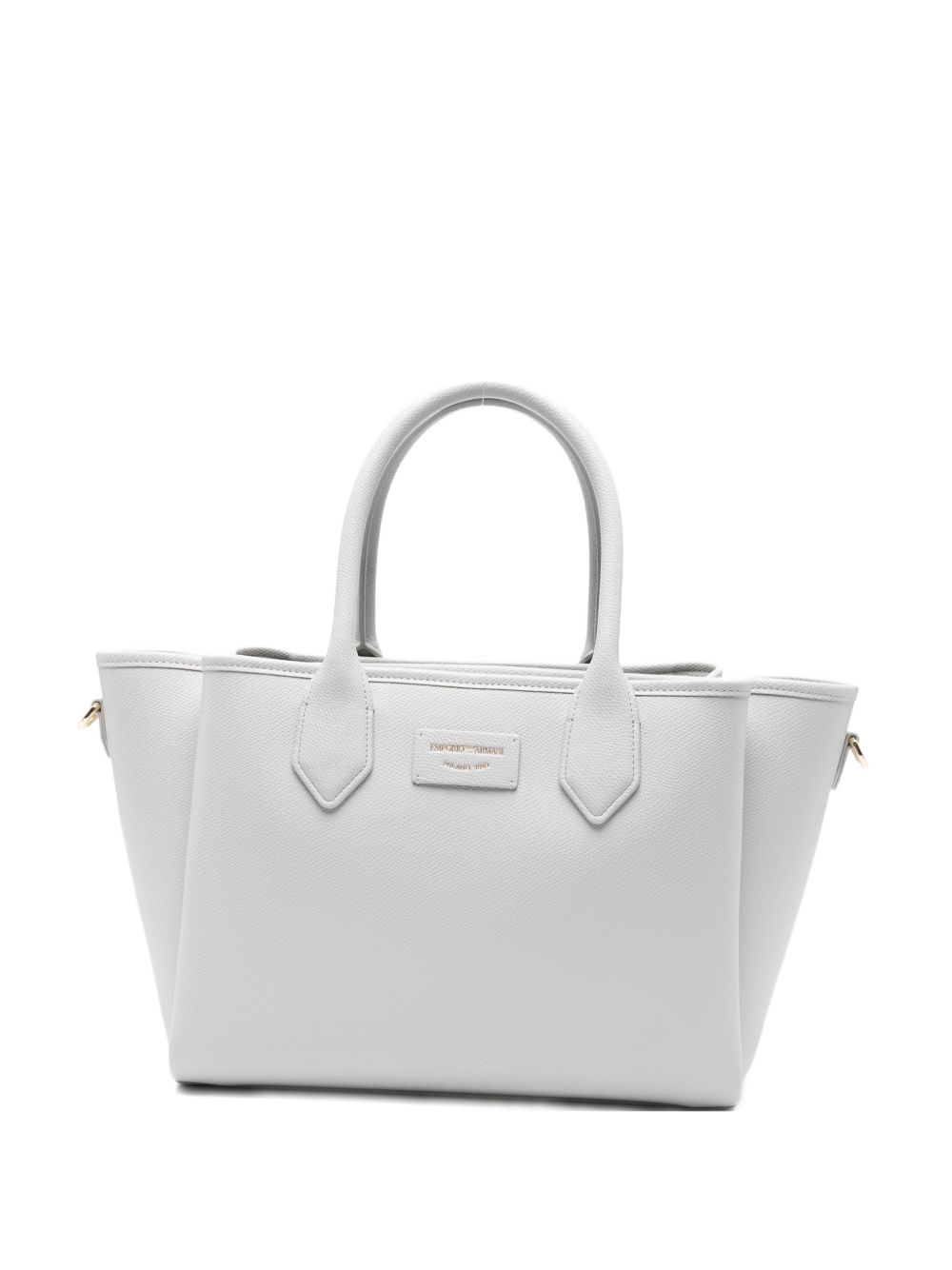 light grey top handles detachable shoulder strap grained texture gold-tone hardware Medium shopping bag. Size and Fit – DEPTH 15 cm. HEIGHT 22 cm. WIDTH 40 cm