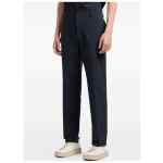 navy blue textured weave button fastening belt loops flat front Slim trousers