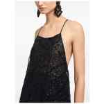 black sequin embellishment backless design spaghetti straps A-line skirt sheer overlay Long dress