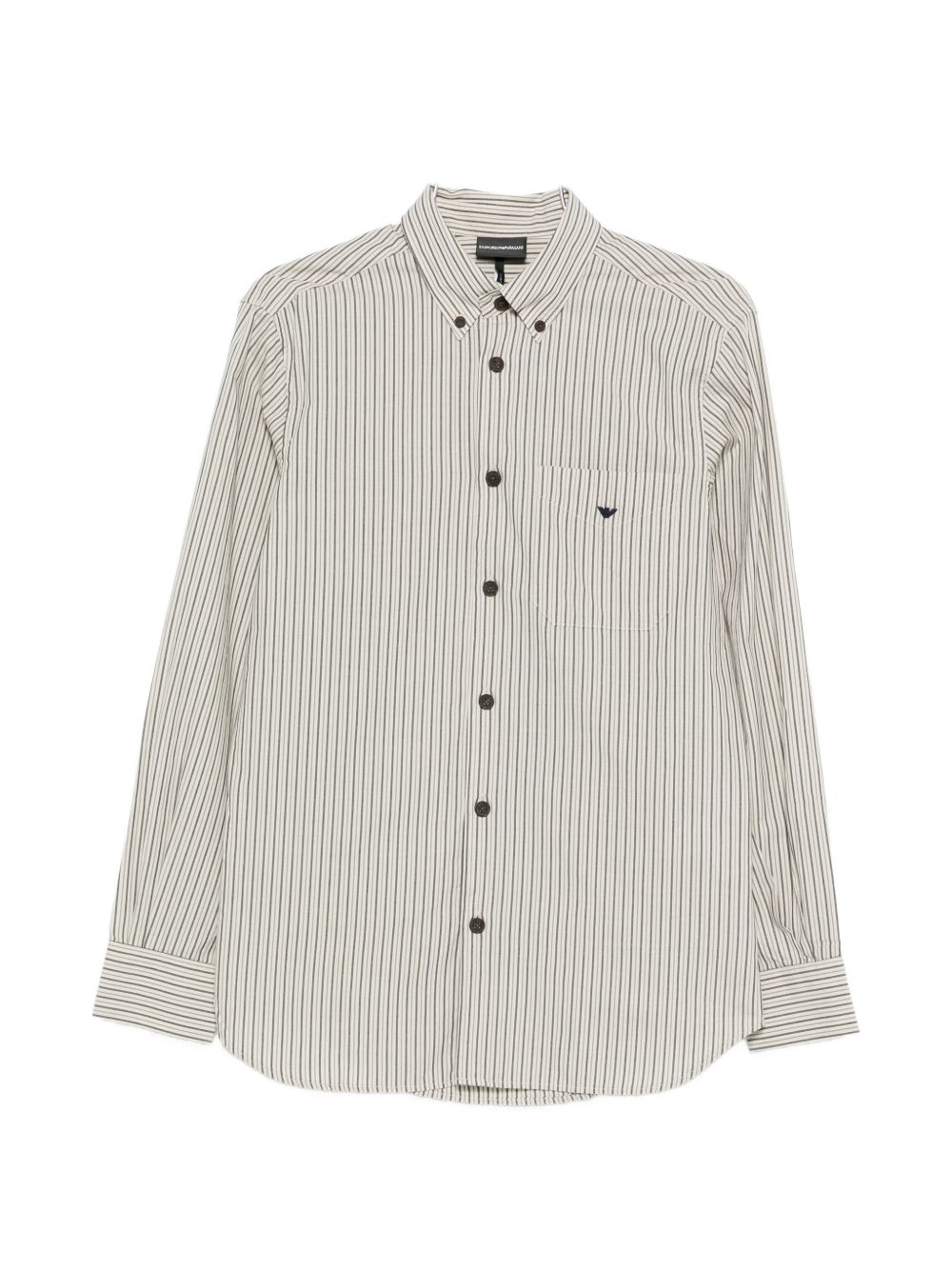 beige/multicolour striped front button fastening chest pocket long sleeves buttoned cuffs Striped cotton shirt.