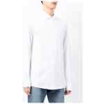 white lyocell-cotton blend spread collar front button placket buttoned-cuff sleeves curved hem Cotton blend shirt
