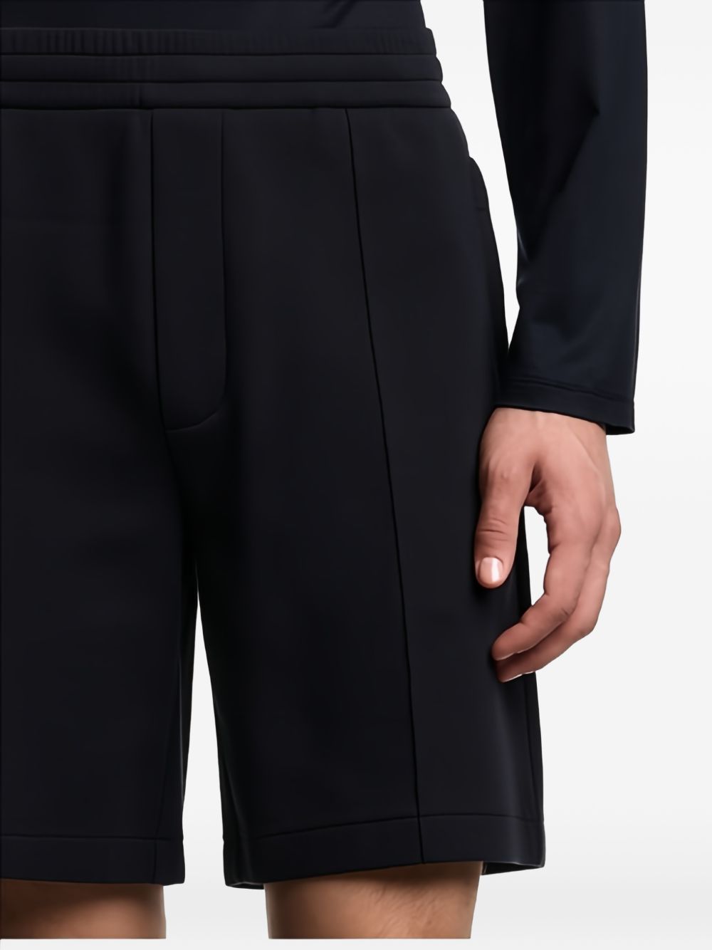 dark blue seam detail side slip pockets elasticated waistband Cotton shorts.