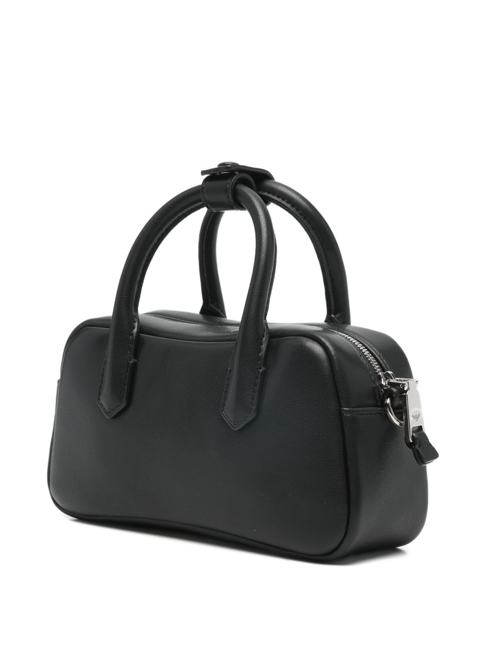 black top handles detachable shoulder strap silver-tone hardware logo plaque zip closure This piece comes complete with a protective dust bag. Small leather bowling bag. Size and Fit – DEPTH: 7.0 Centimetres. HEIGHT: 10.0 Centimetres. WIDTH: 19.0 Centimetres. HANDLE: 8.0 Centimetres.
