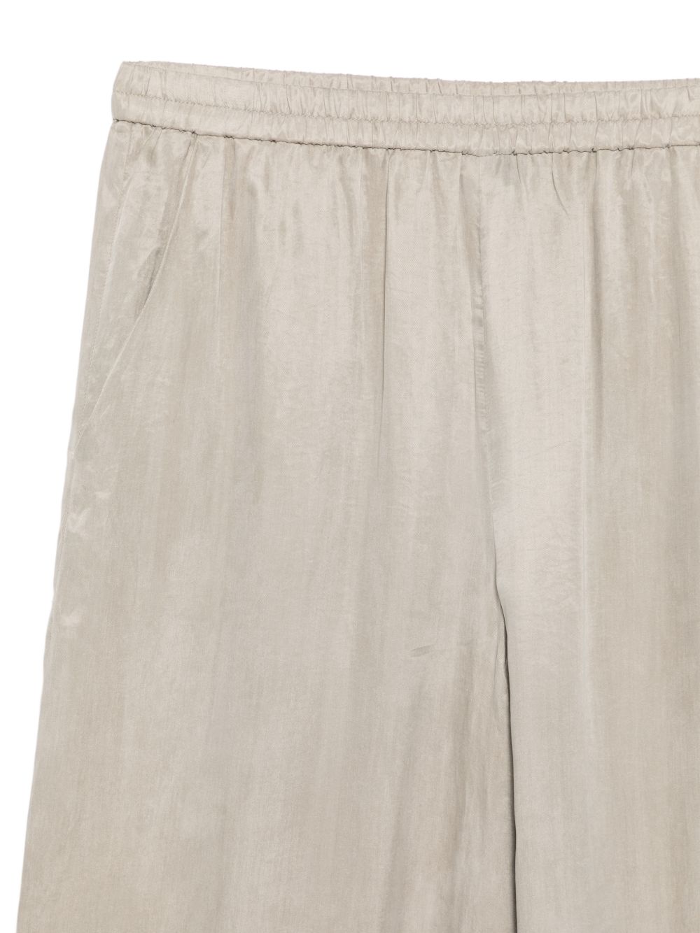 light grey lyocell satin finish elasticated waistband wide leg two side slit pockets slip-on style Straight-leg trousers.