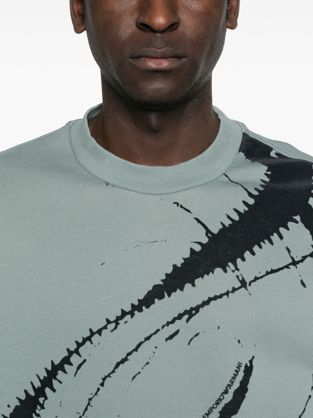 blue/black cotton abstract print round neck long sleeves drawstring hem ribbed trims Cotton crewneck sweathisrt.
