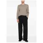 light brown textured knit crew neck long sleeves ribbed hem and cuffs Wool crewneck sweater