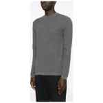 grey virgin wool textured knit round neck long sleeves ribbed hem Wool crewneck sweater