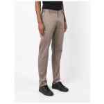 light brown stretch-cotton belt loops pressed crease slim cut concealed front fastening two diagonal pockets to the sides two rear welt pockets Cotton chino trousers