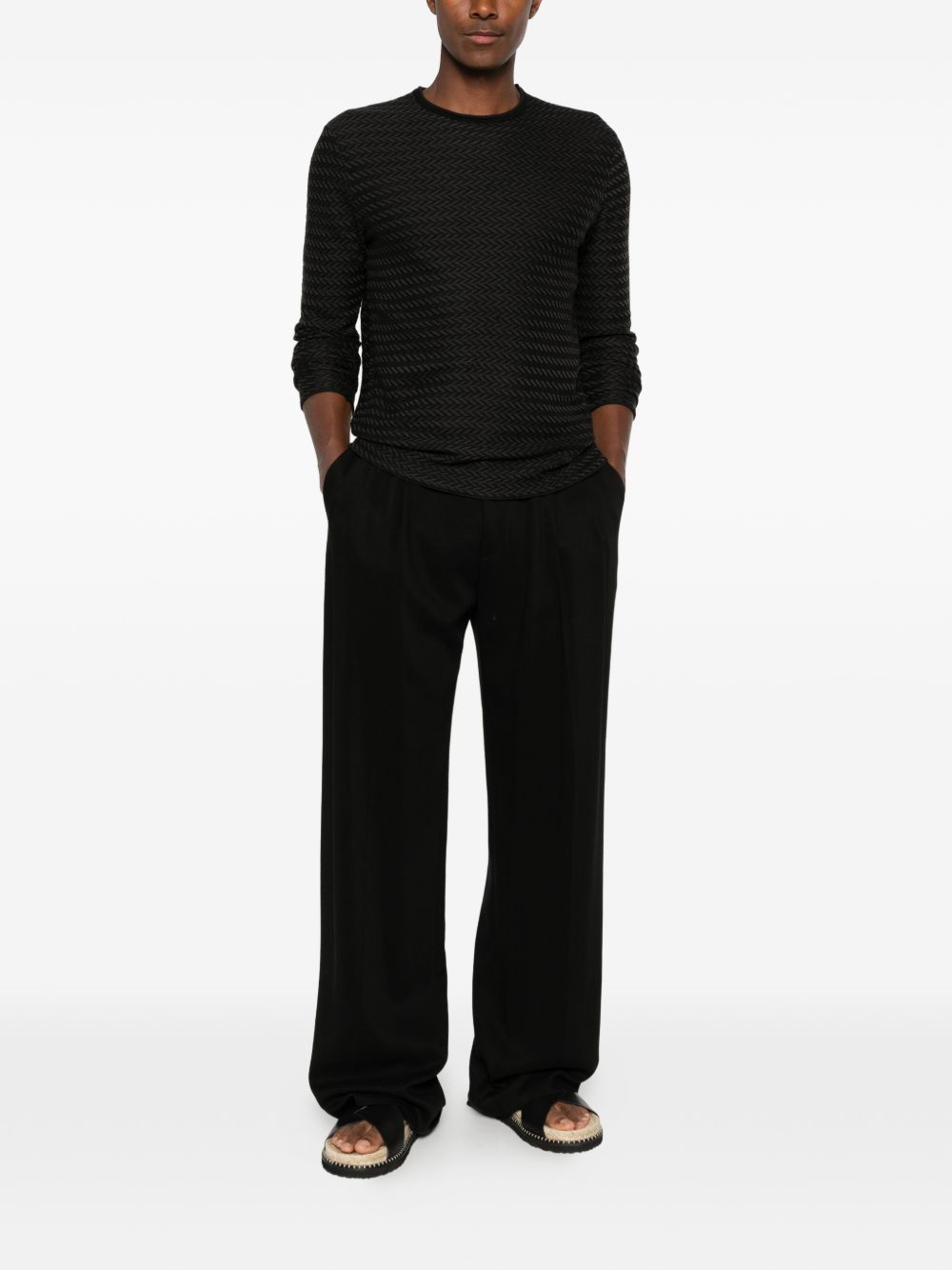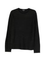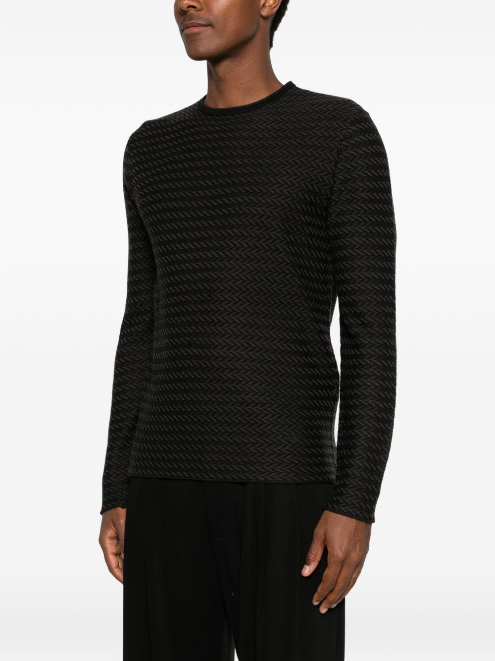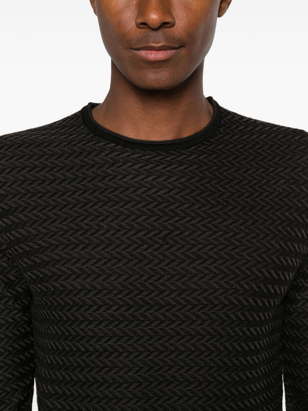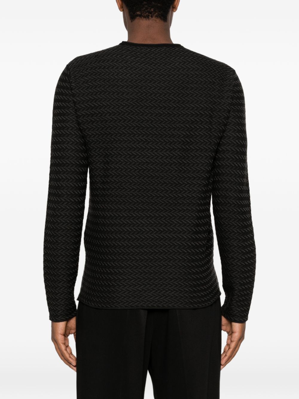 green patterned knit round neck long sleeves ribbed hem ribbed cuffs Wool crewneck sweater.