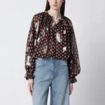 ETRO Black silk shirt with fil coupé roses