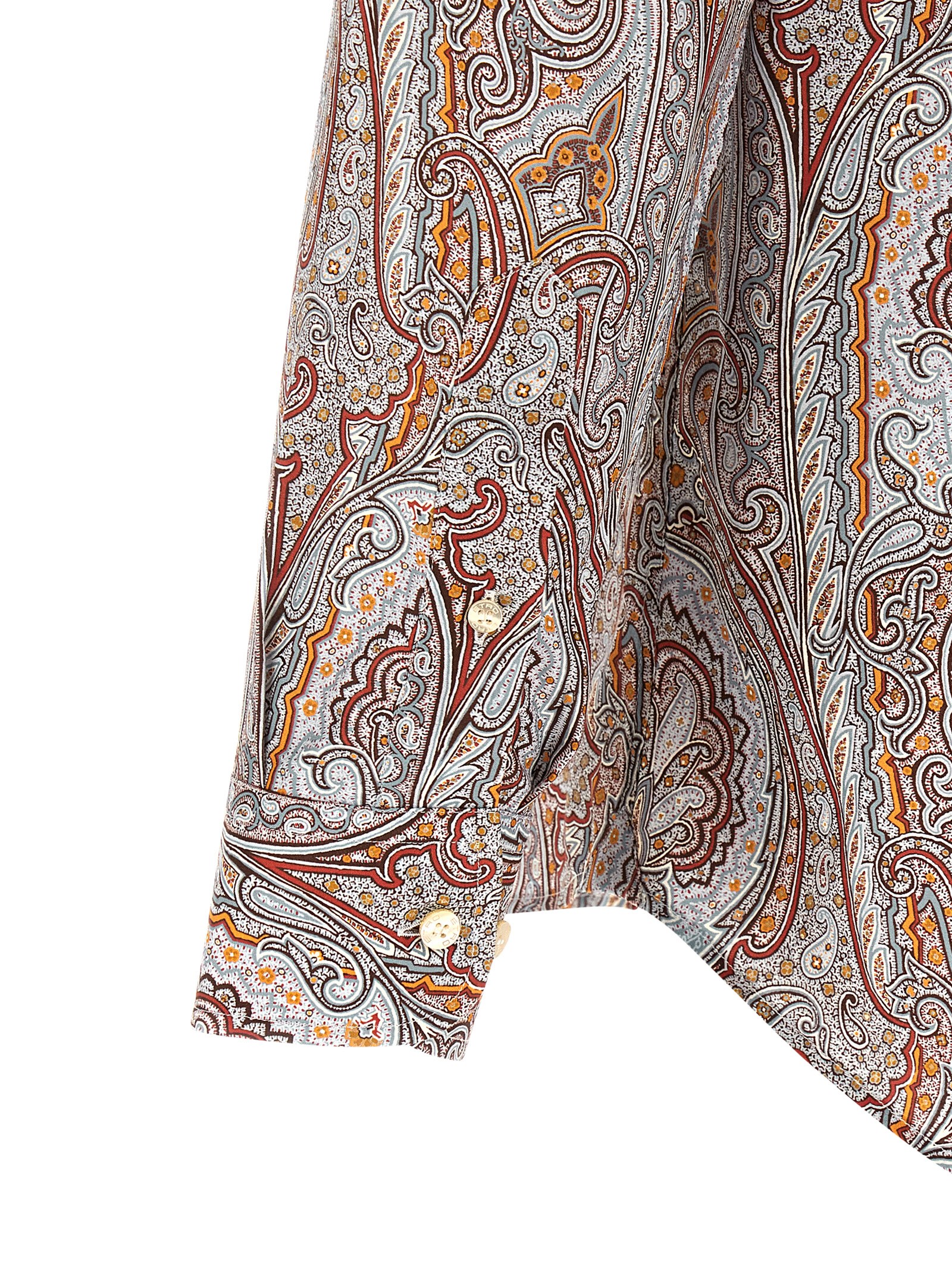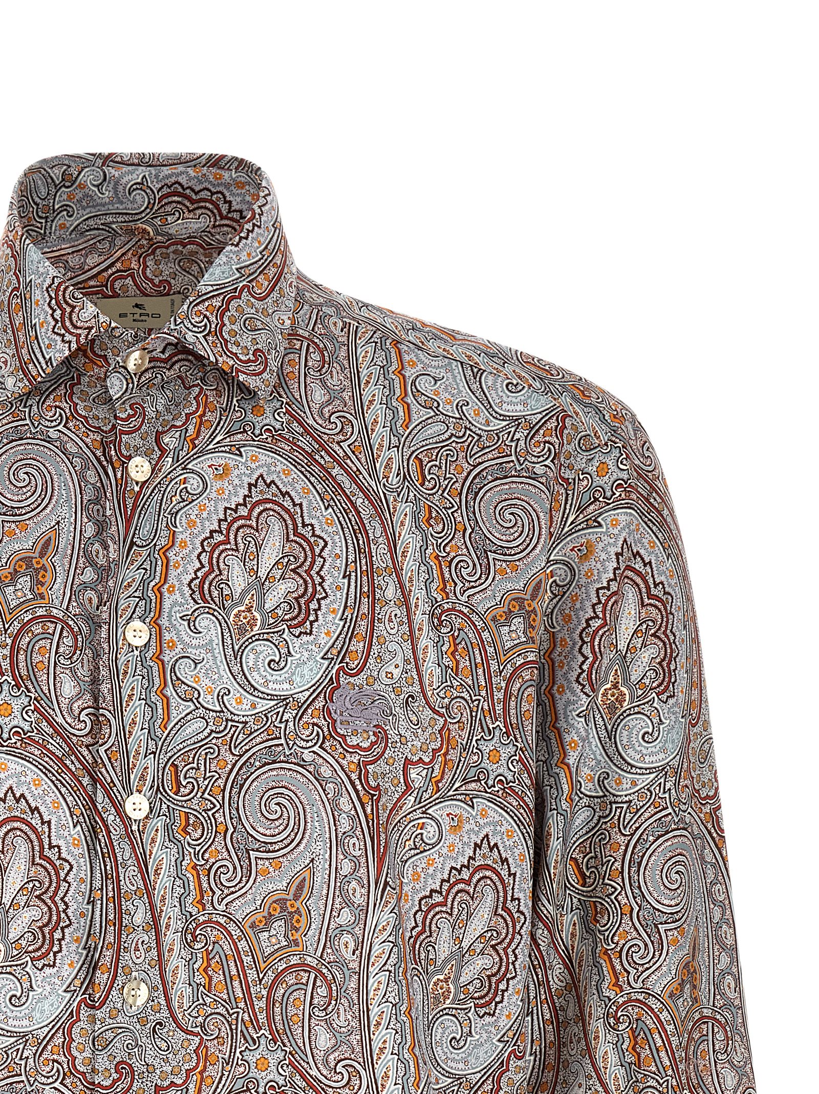 All-over floral Paisley floral satin shirt, front button closure, long cuffed sleeves.