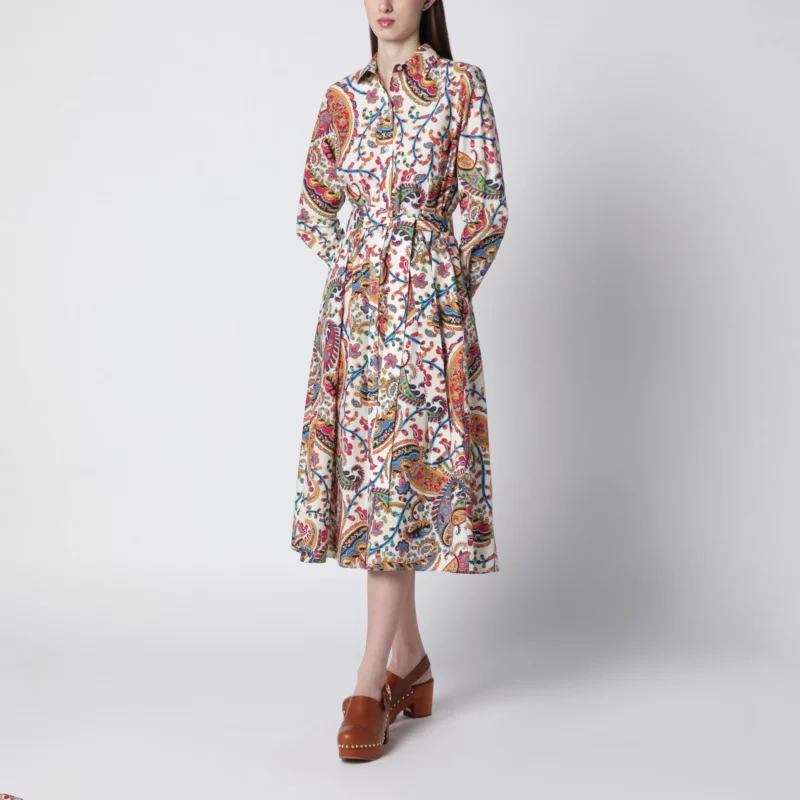 Etro midi dress in cotton with paisley print