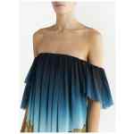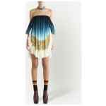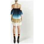 paisley-print silk dress from ETRO featuring blue, multicolour, silk, gradient effect, paisley print, gradient effect, ruffled detailing, off-shoulder, long sleeves and curved hem. Printed silk mini dress