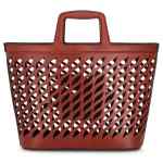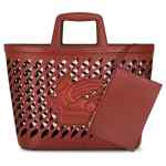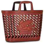 Pegasus shopping bag from ETRO featuring light brown, calf leather, embossed logo to the front, open top, circular top handles and main compartment. Perforated leather shopping bag