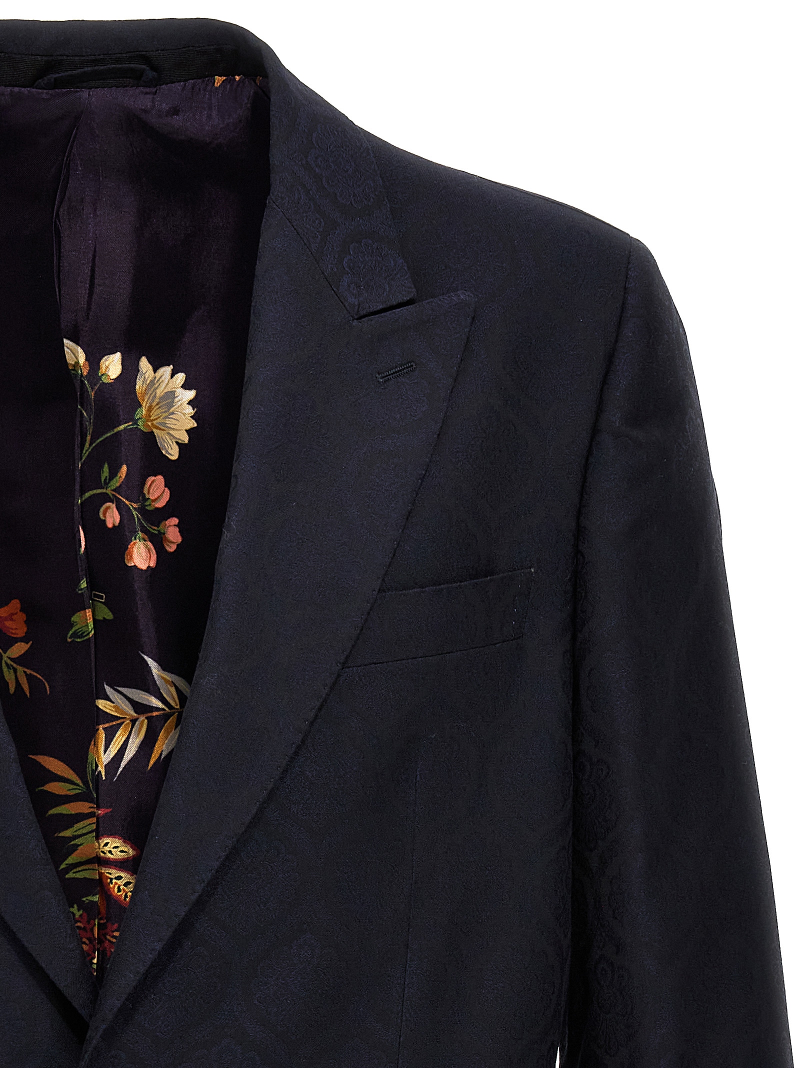 Single-breasted blazer in jacquard cotton and wool, button closure, pockets, structured shoulder straps, back split, and long sleeves.