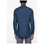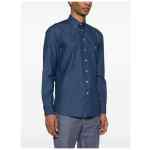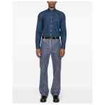 indigo blue cotton paisley print embroidered logo at the chest signature Pegaso motif button-down collar front button fastening long sleeves rear curved hem Logo cotton shirt