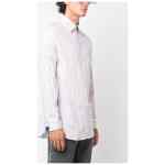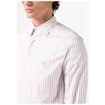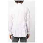 logo-embroidered striped shirt from ETRO featuring sand beige, multicolour, cotton, embroidered logo at the chest, vertical stripe pattern, spread collar, front button fastening, long sleeves, buttoned-cuff sleeves and curved hem. Striped cotton shirt