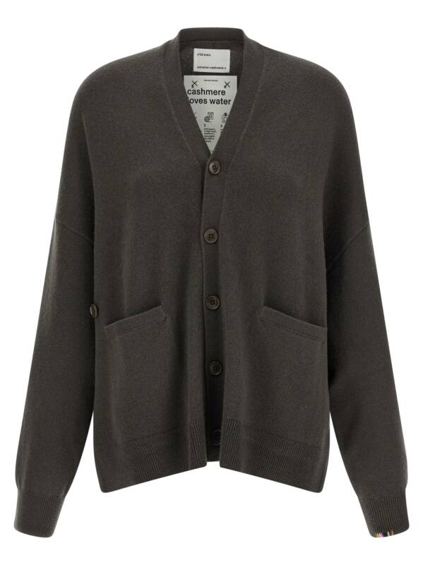 ‘n°24 tokio’ cashmere blend cardigan, V-neck, Front corozo button closure plus a side one that can change the fit, Side slits, Pockets, Long sleeves with cuffs and dropped shoulder.