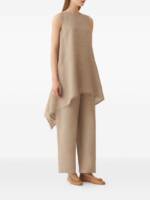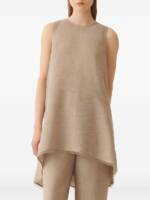 brown, sleeveless, asymmetric hem, panel, keyhole at the back Asymmetric top.