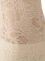 beige crochet knit open knit tie detail Crochet midi dress.