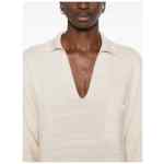 beige chest pocket short sleeves V-neck tonal stripes collar Wool and cotton shirtdress
