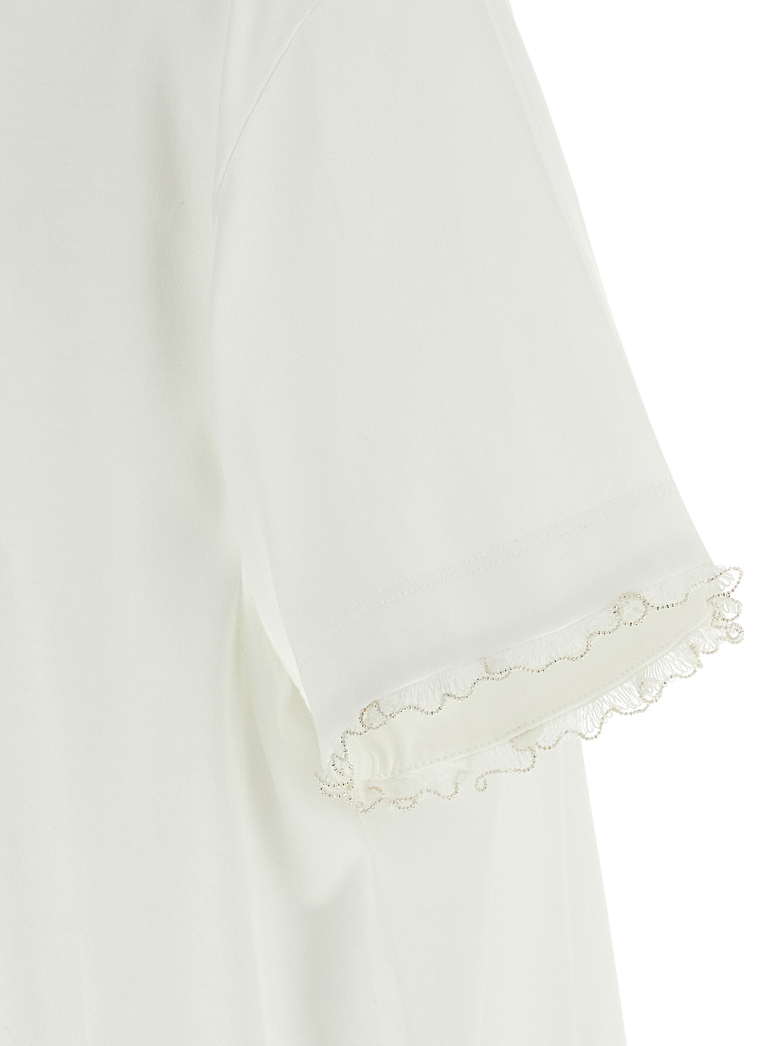 T-shirt in cotton jersey, Crew neck, Straight cut, Embroidery detail with beads on the neck and sleeves. Size and Fit – True to size fit