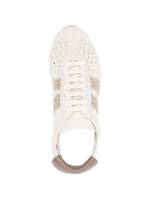white and beige lace-up fastening round toe pull-tab at rear flat rubber sole Knitted sneakers.