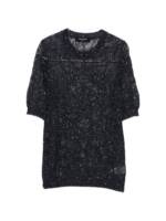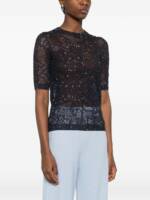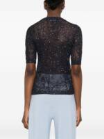 blue sparkle embellishments crew neck short sleeves open knit design Openwork t-shirt.