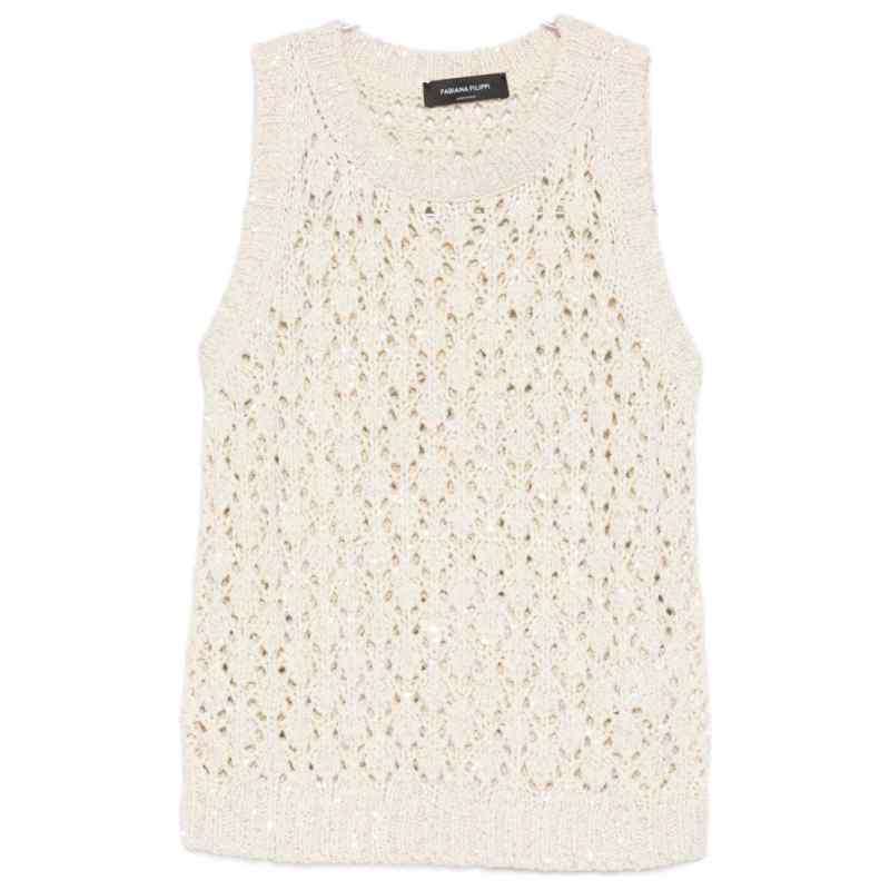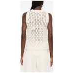 light beige open-knit pattern crew neck sleeveless Sleeveless top.