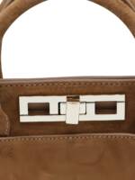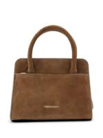 brown top handle detachable shoulder strap silver-tone hardware flap top front slip pocket Suede leather handbag.