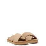 Platform slipper with crisscrossing suede straps embellished with a delicate tone-on-tone diamond thread. The microfiber sole and suede insole ensure a soft, comfortable fit with a contemporary feel. Made in Italy using sustainable processes. Suede leather platform sandals.