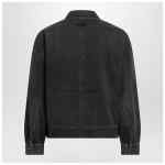 Fear of God black faded-effect canvas jacket, featuring cropped boxy fit, hidden front closure, shirt collar, long sleeves, embossed logo label on the back, and two side pockets.