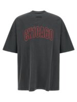 ‘city exclusive chicago 90s’ cotton jersey t-shirt with tone-on-tone embossed print on the front and back, Crew neck, Short sleeves with dropped shoulders, Back rubberized logo patch. Size and Fit – Essentials 90’s fit