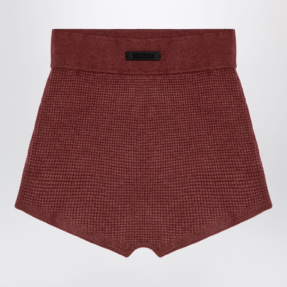 Burgundy honeycomb Short by Fear Of God Essentials, featuring an elasticated waistband with rubberized logo patch on the front and ribbed edges.