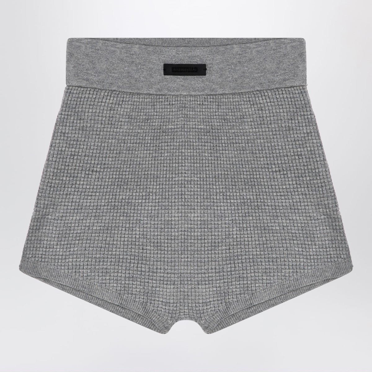 Grey honeycomb Short by Fear Of God Essentials, featuring an elasticated waistband with rubberized logo patch on the front and ribbed edges.