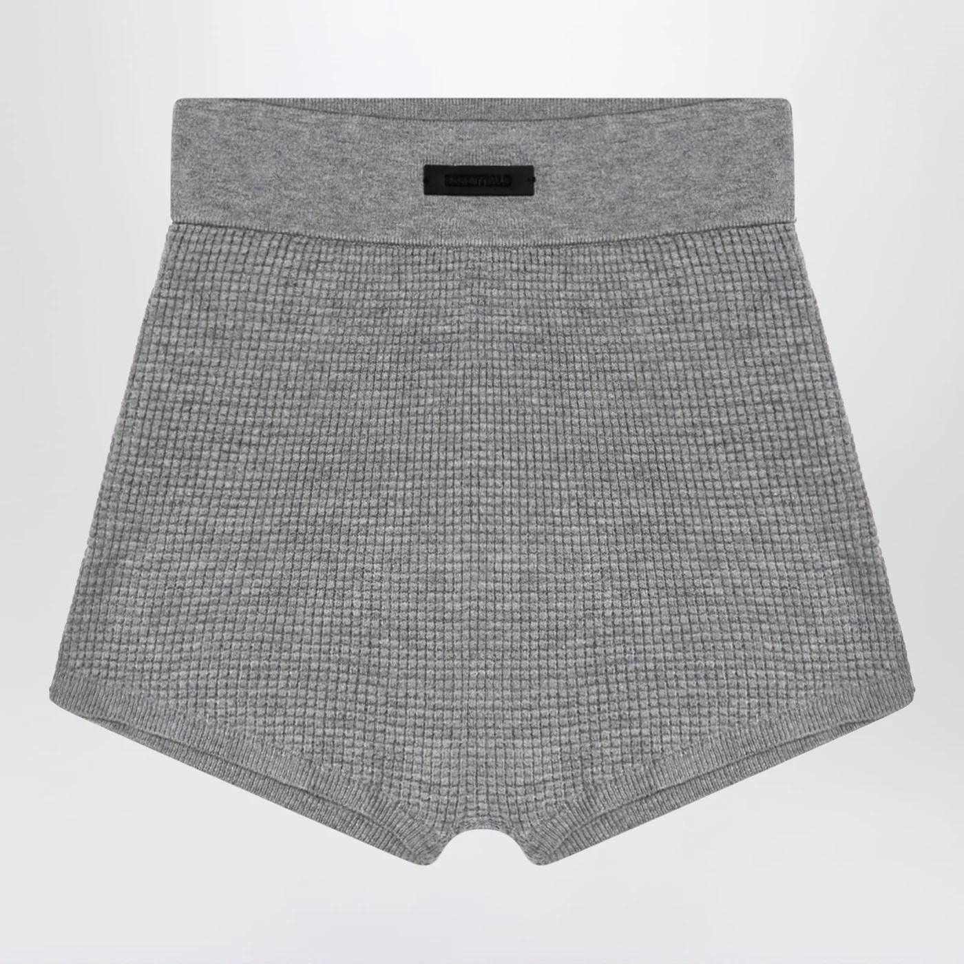 Grey honeycomb Short by Fear Of God Essentials featuring an elasticated waistband with rubberized logo patch on the front and ribbed edges.