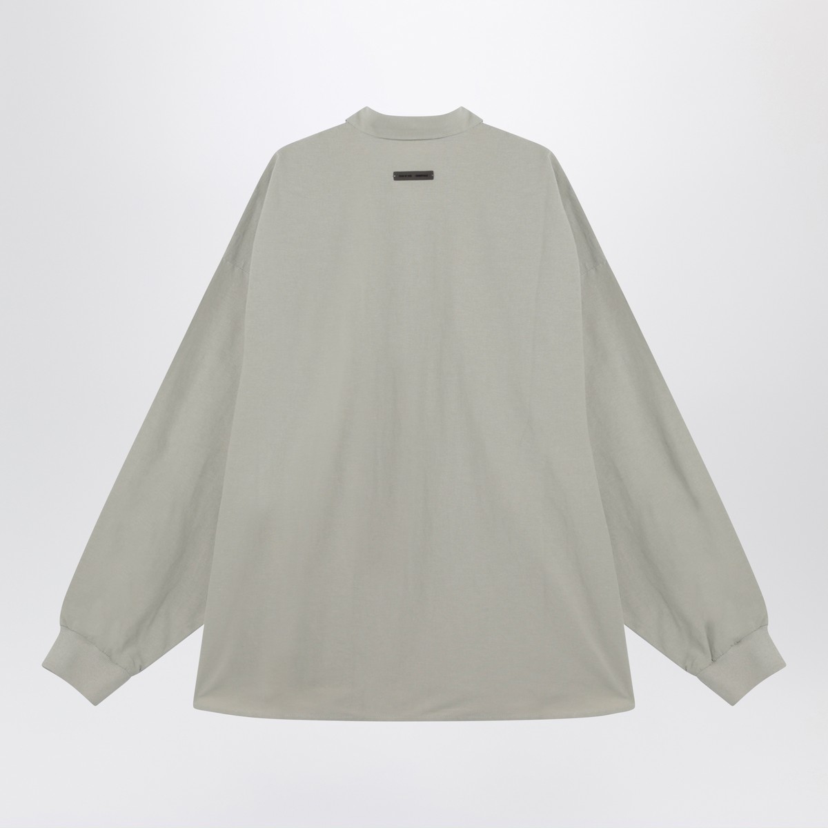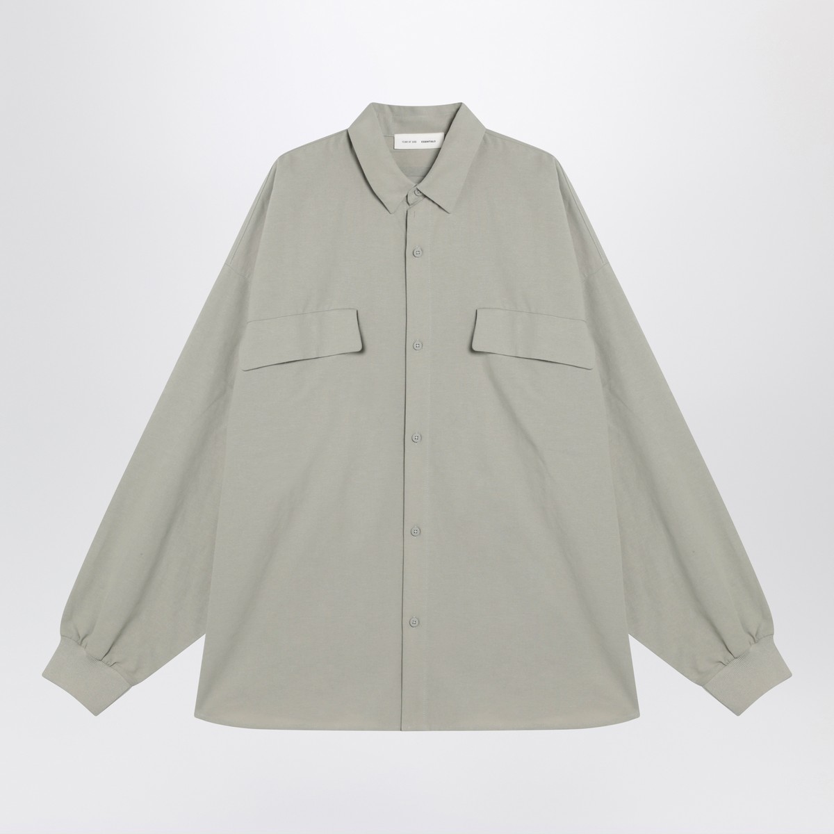 Fear Of God Essentials light grey cotton shirt, featuring front button closure, two flap chest pockets, ribbed knit cuffs and rubber logo patch on the back.