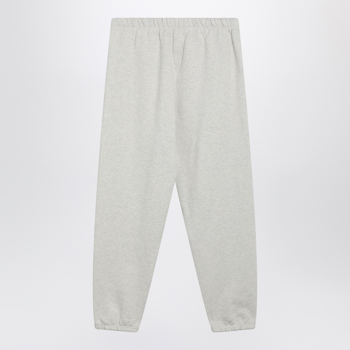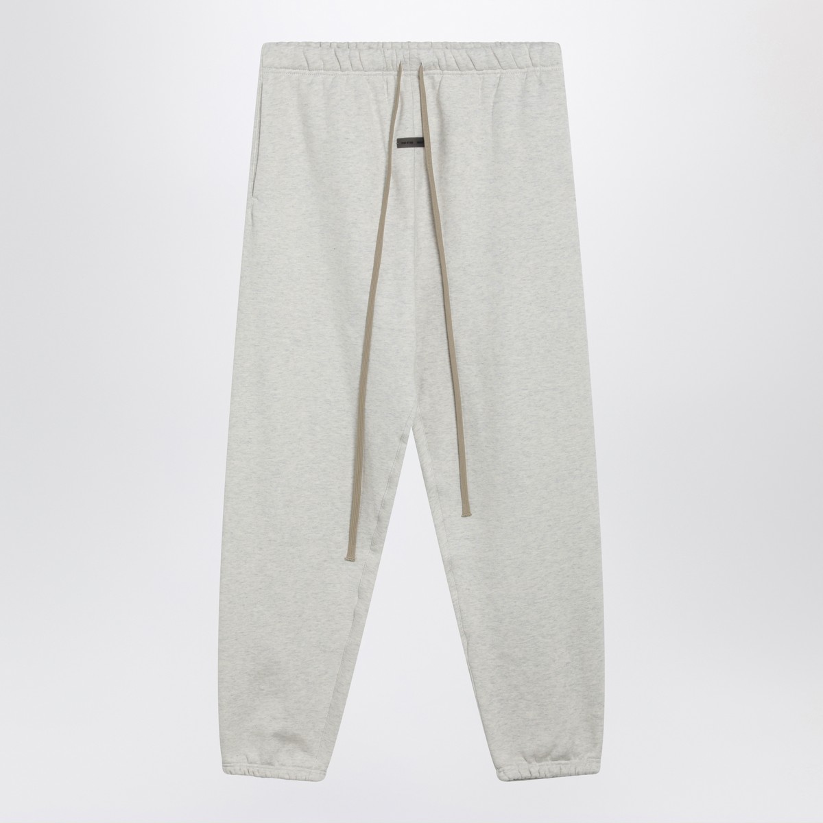 Light grey mélange cotton-blend jogging trousers by Fear of God Essentials, featuring an elasticated drawstring waist, two side pockets, elasticated cuffs and front rubber logo patch.