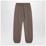 Military green cotton jogging trousers from Fear Of God Essentials featuring an elasticated waistband with drawstring, two side welt pockets, contrasting lettering logo print on the front and rubberized logo patch on the front.