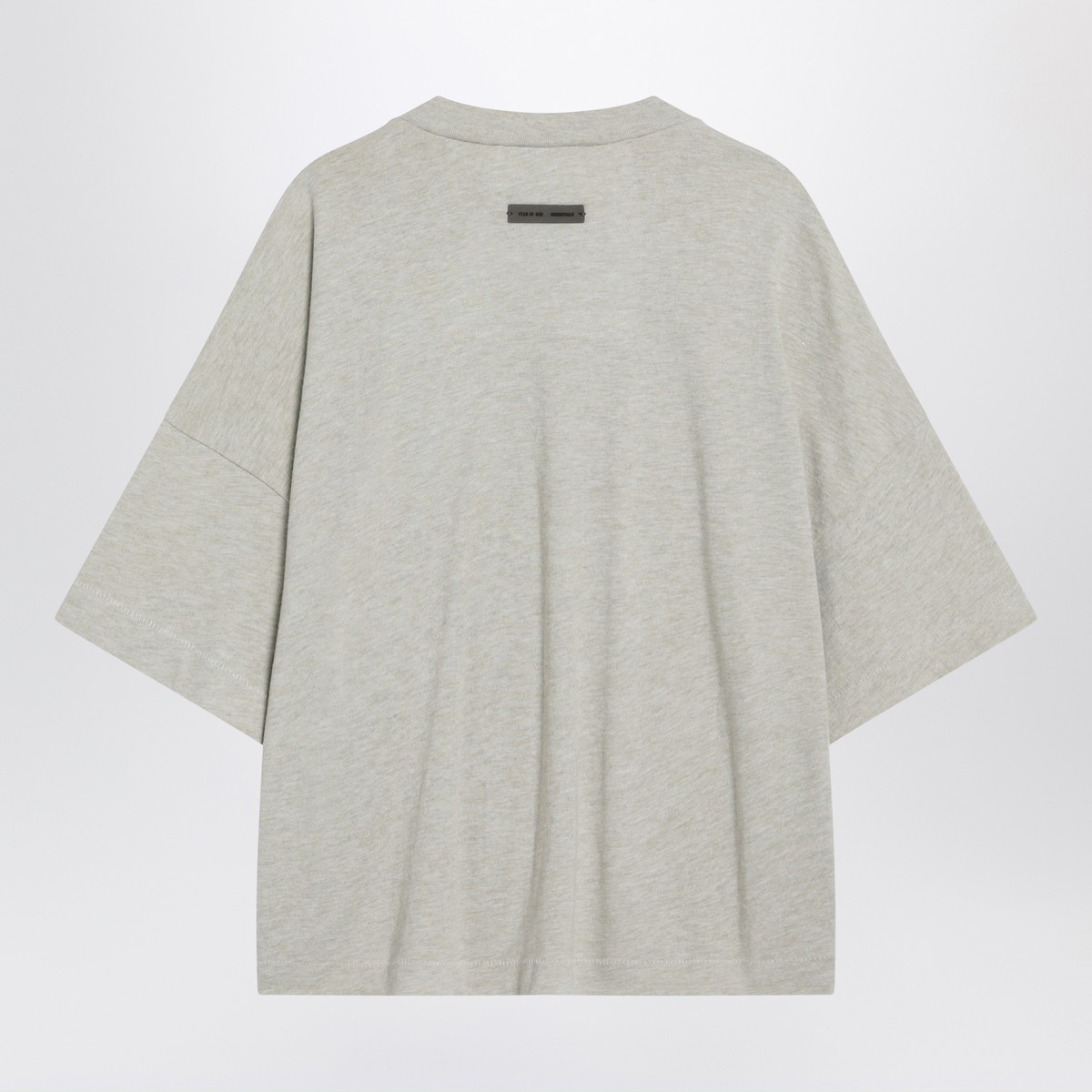 Oversized greige cotton-blend T-shirt by Fear Of God Essentials, featuring short sleeves, ribbed crew neck, dropped shoulders, and back logo patch.
