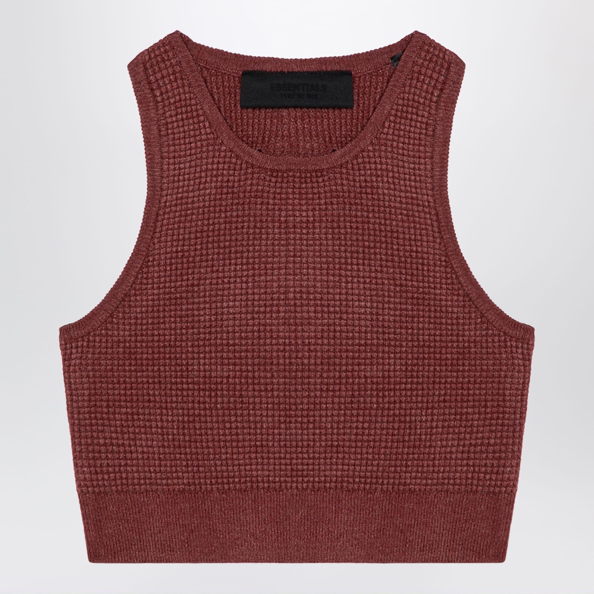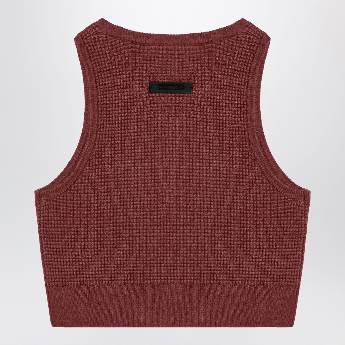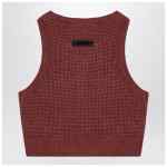 Short crew-neck tank top in burgundy honeycomb by Fear Of God Essentials, featuring rubberized logo patch on the back and ribbed hem.