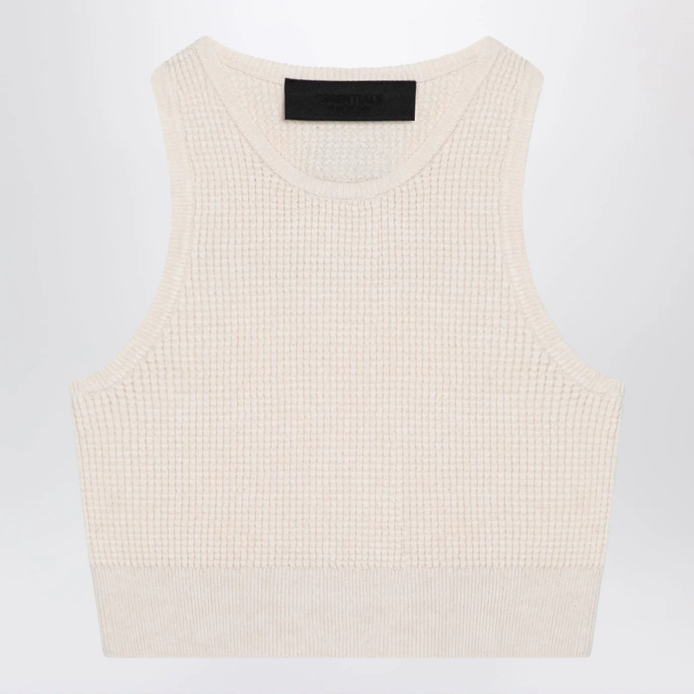 Short crew-neck tank top in white honeycomb by Fear Of God Essentials featuring rubberized logo patch on the back and ribbed hem.