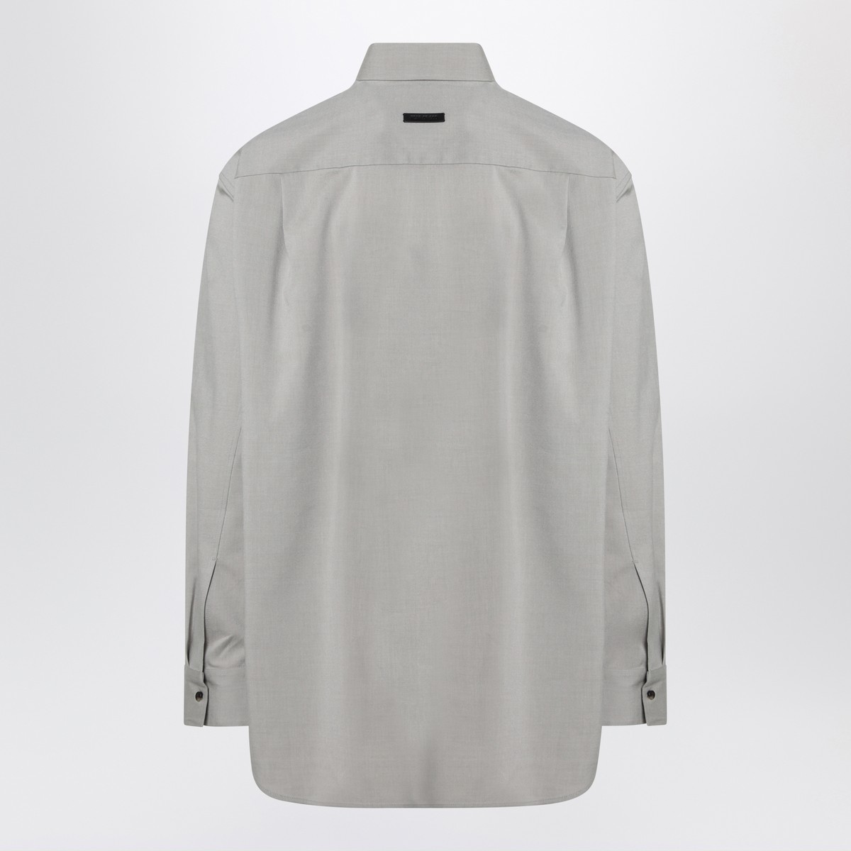 Fear of God grey dove mélange cotton shirt, characterized by hidden front buttoning, long sleeves with buttoned cuffs, classic collar, curved hem, and back logo patch.