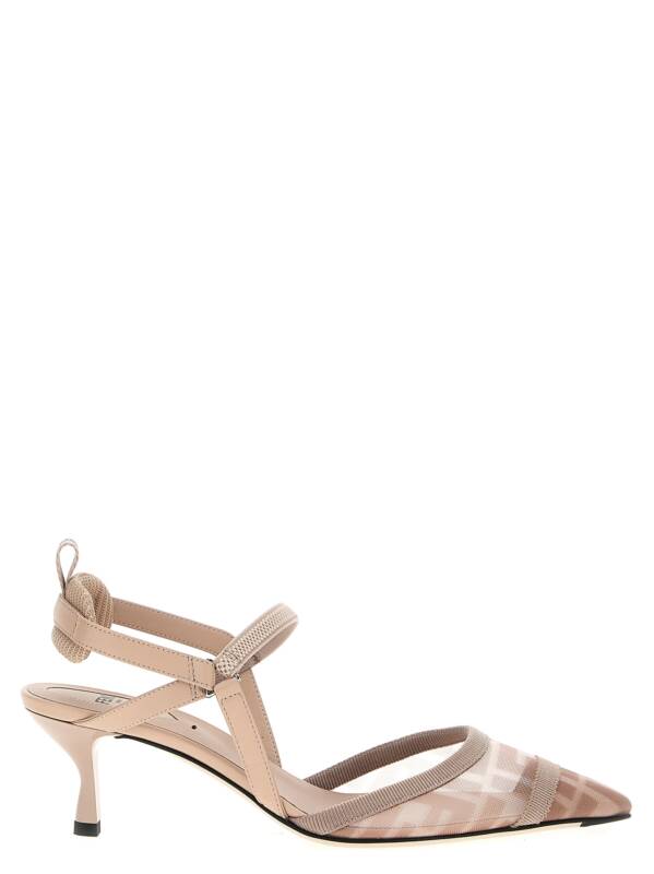 Mesh ‘colibrì lite’ slingbacks with iconic ff pattern with leather details and grosgrain ribbon, Pointed toe, Back strap with padded pad and trekking hook, Elastic top strap, Heel, Leather sole. Size and Fit – EU WOMEN